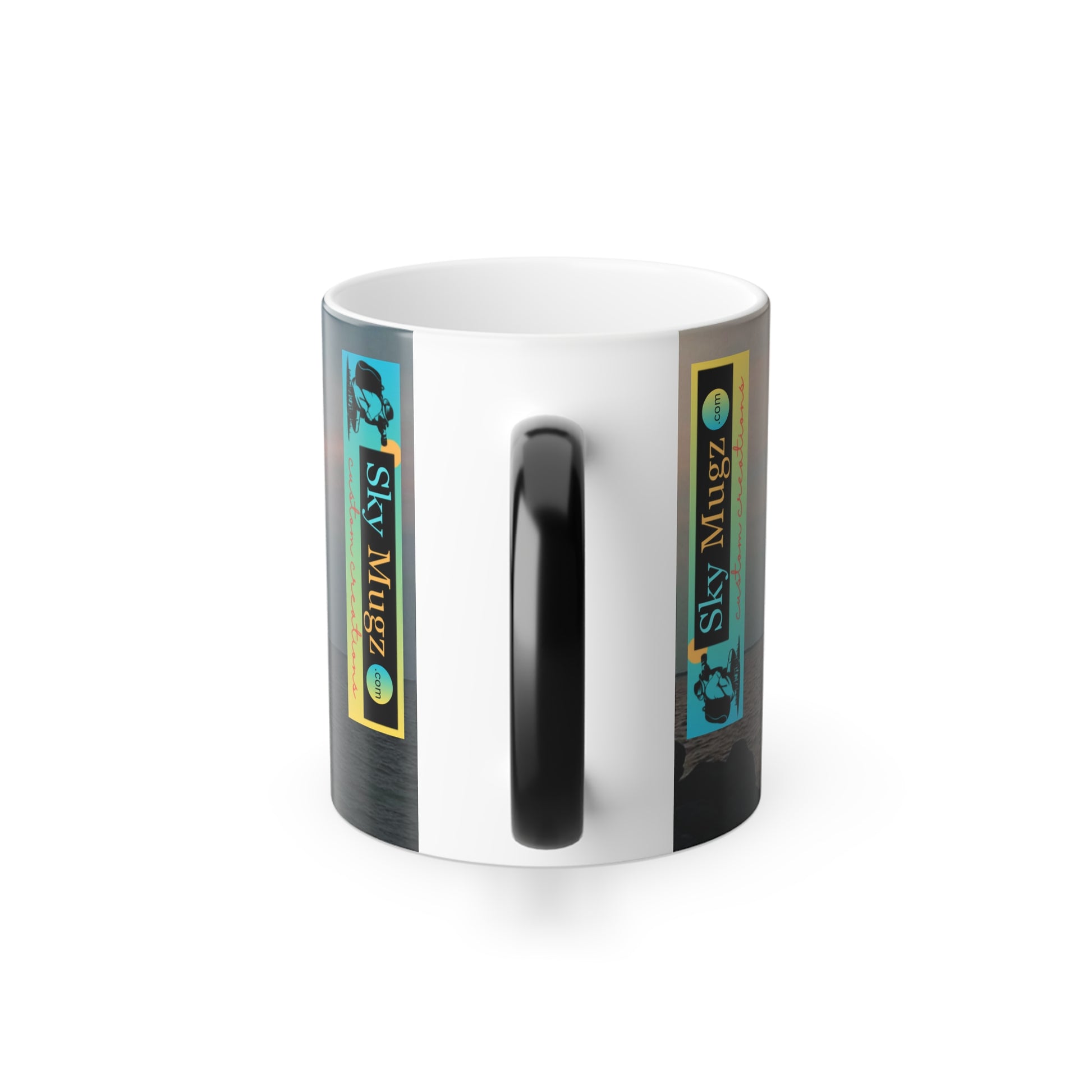 Our sky mugs are a super popular gift for friends and loved ones. The heat-reactive surface reveals a custom image once the mug gets warm. The ceramic cup will go back to its original black outside and white inside when it cools down. Each new use is like a unique gift that keeps on giving, cup after cup.
